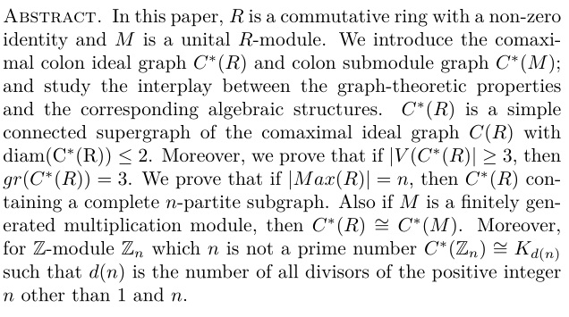 Colon ideal, comaximal ideals, graphs on commutative rings, graphs of submodules.Abstract