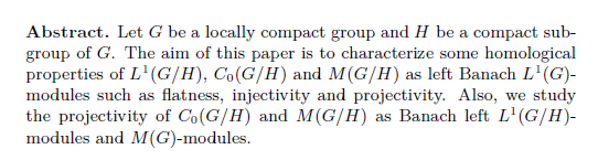 Banach module, flatness, homogeneous spaces, injectivity, locally compact group, projectivity.Abstract